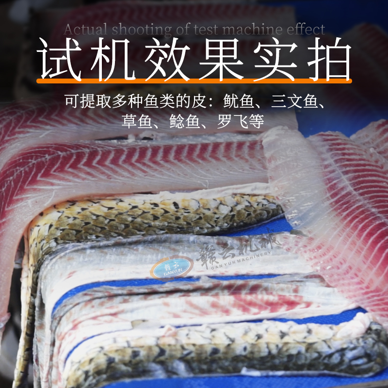 全自动去鱼皮机适用于多种鱼类的鱼皮提取,不伤鱼肉,鱼皮完整。