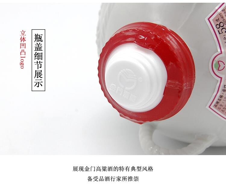 以金门官窑金门陶瓷厂锣纹瓷坛装盛金门高粱酒,不仅摆饰气派,散发着古朴喜气,坛瓶饰以舞跃龙腾浮雕图案,气质展露无遗,品相大方。大容量之坛装酒对於陈化效果作用尤为显着,为送礼、自用及收藏的热门酒品。本酒品装盛白金龙,款式有1公升、2公升、3公升、5公升。