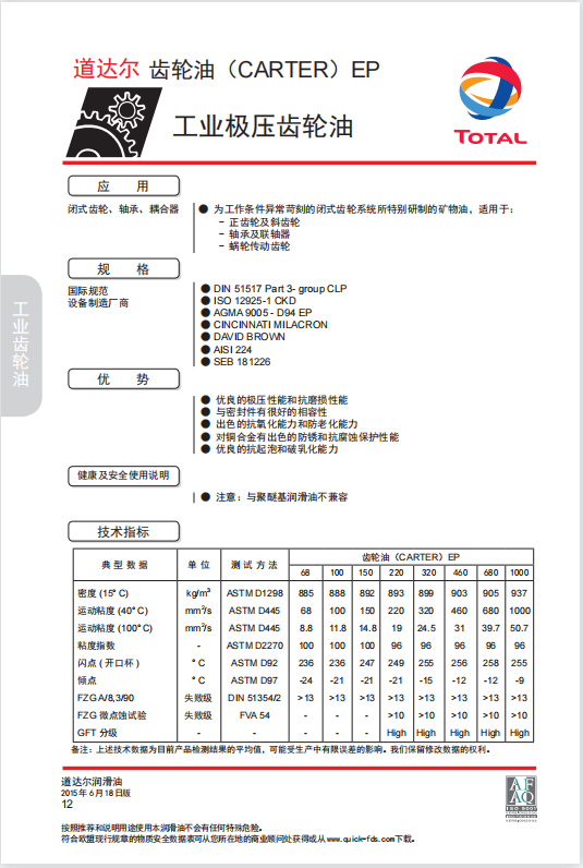 优势 | 优良的极压性能和抗磨损性能 | ||