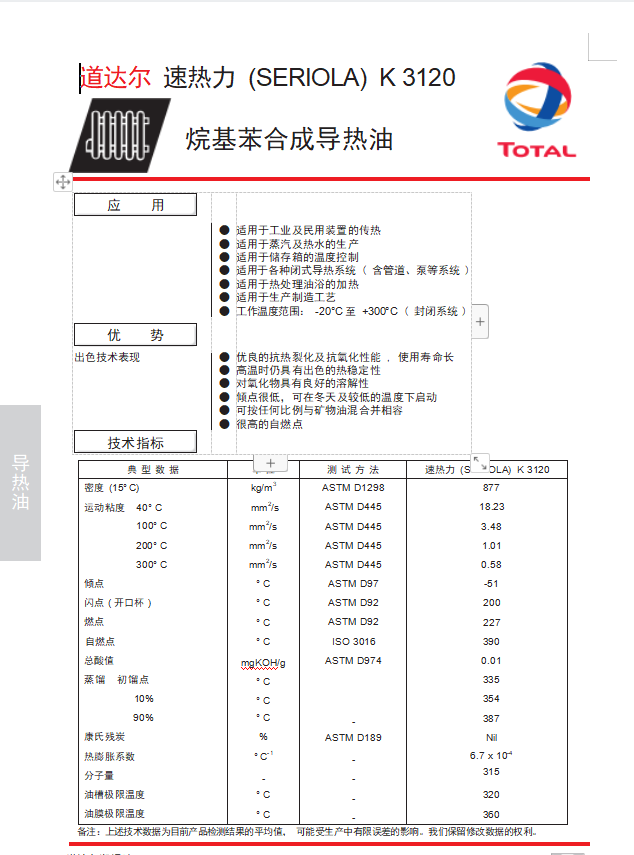 油槽极限温度 | 320 | ||