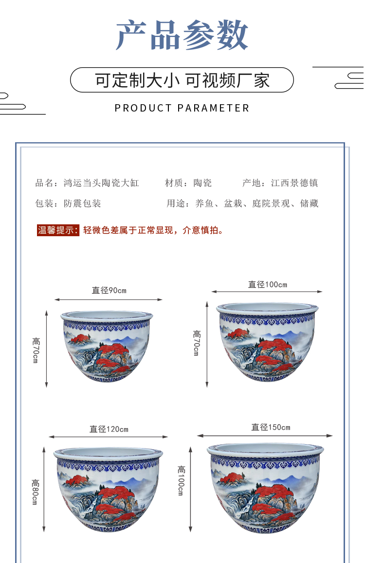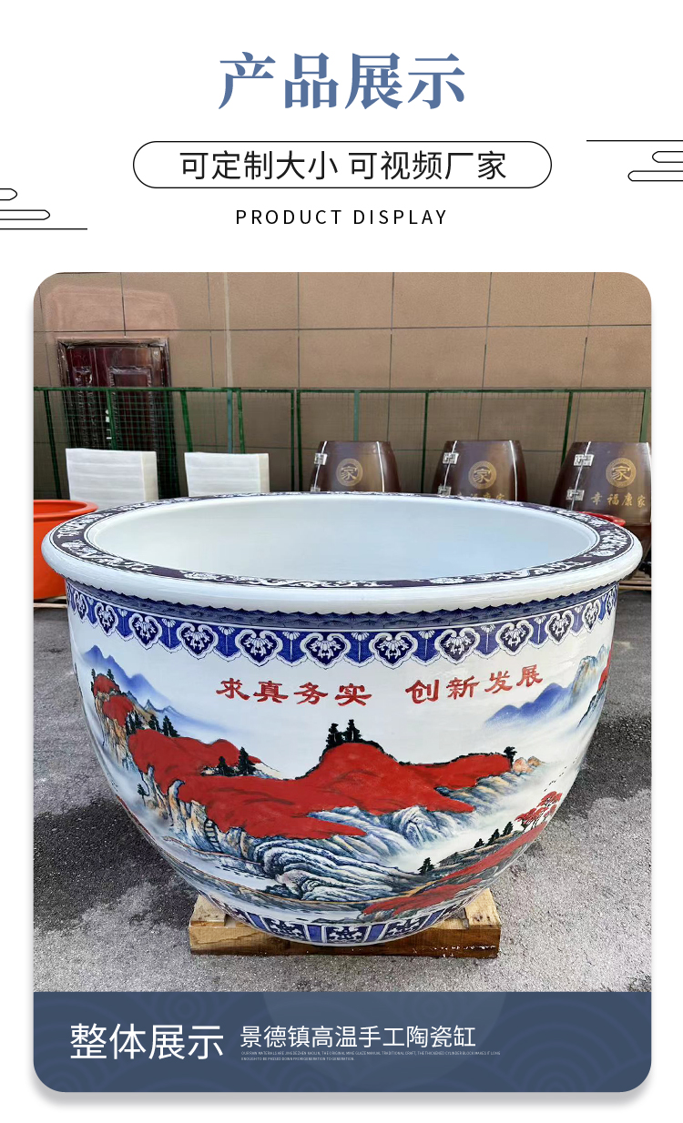 景德镇陶瓷大缸手绘瓷缸金鱼缸锦鲤缸乔迁送礼缸水族箱庭院摆件