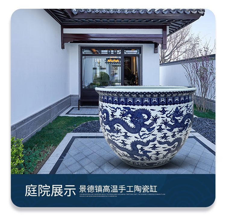 景德镇陶瓷大缸养鱼青花锦鲤睡莲荷花盆户外种树缸招财庭院仿古水缸