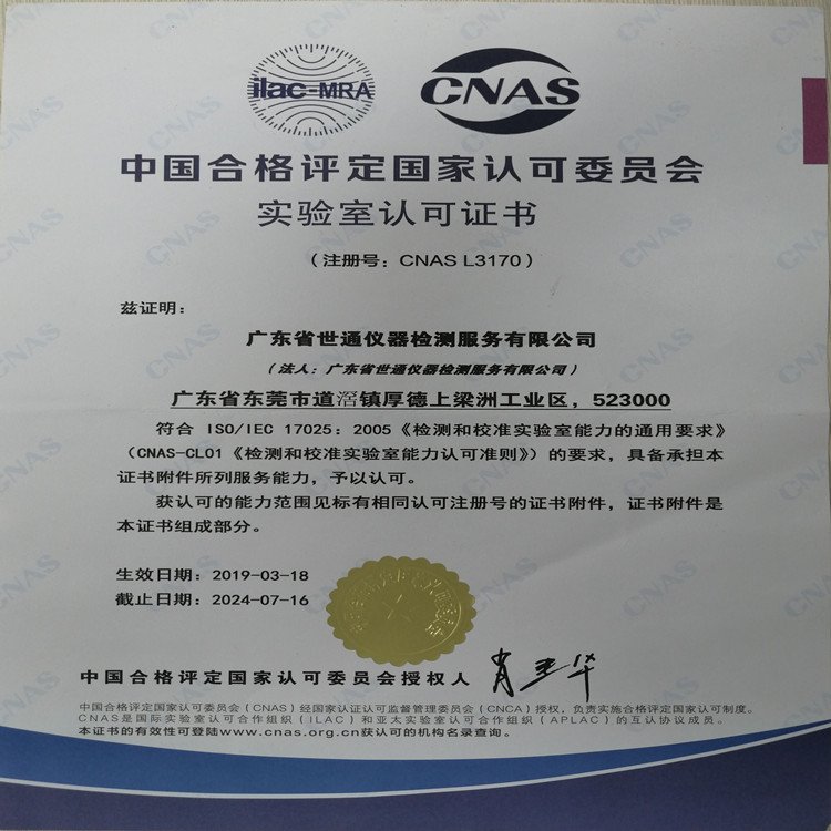 CNAS认可号 | L3170 | ||