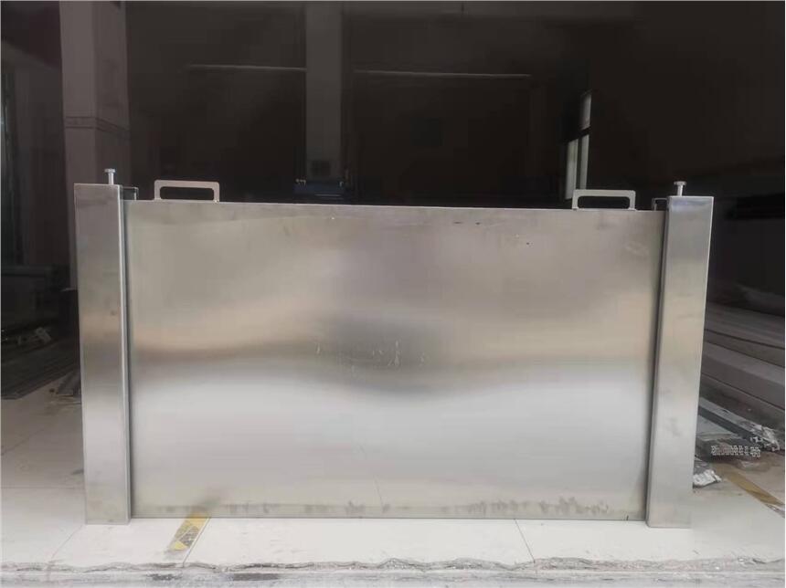 不锈钢防汛挡水板介绍:本品采用全304不锈钢板配合先进的无缝焊接技术一体成型,我们严格采用1.5mm厚不锈钢板和2mm厚不锈钢方管(内部支撑龙骨)契合。防水胶条我们全部采用EPDM防水胶条,防水效果达99%及以上(地面平整可测试)。成品不锈钢挡水板分为2种:①不锈钢单片式挡水板,可根据客户要求可进行单片高低、长短进行定制。②不锈钢层叠式挡水板,高度可根据客户要求可进行逐层叠加确定,长度根据客户需求进行定制。