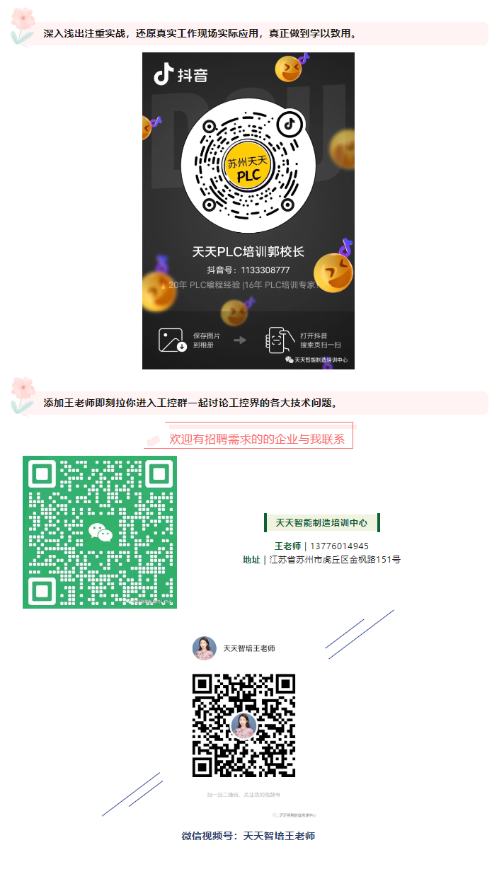 让想进入自动化行业的小白通过4个月的学习,掌握电工基础、PLC基本原理和编程技能,达到培训经历=工作经验的目标,为顺利就业提供夯实的基础。培训合格后包就业,就业单位为苏州及周边区域大中小型自动化公司,就业岗位为PLC调试工程师、机器人调试工程师、视觉调试工程师、设备维修维护工程师等,综合工资5000-10000元/月。