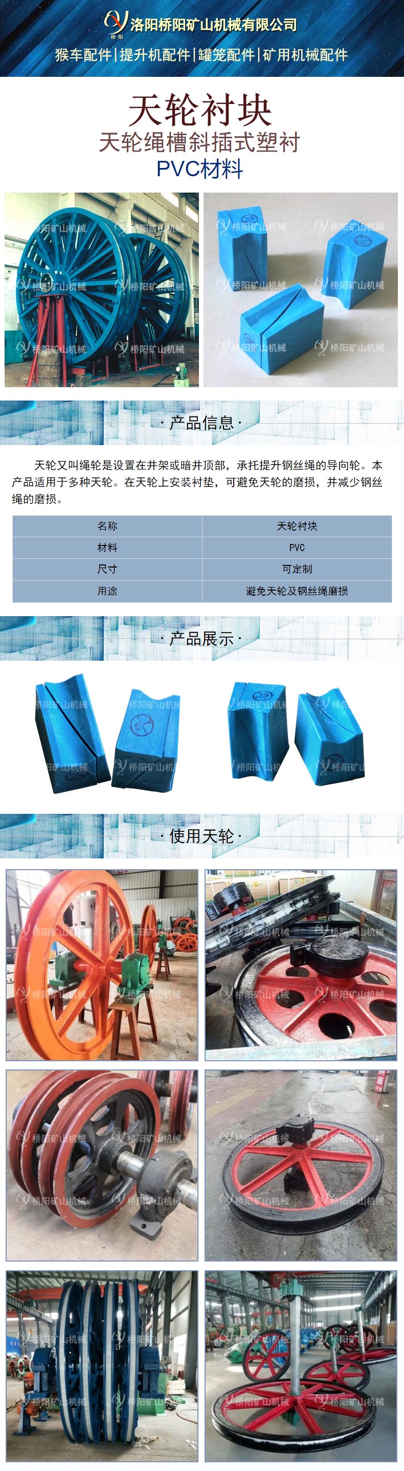 在天轮上安装衬垫,可避免天轮的磨损,并减少钢丝绳的磨损、延长了钢丝绳的使用周期,从而降低更换天轮和钢丝绳的工作量。