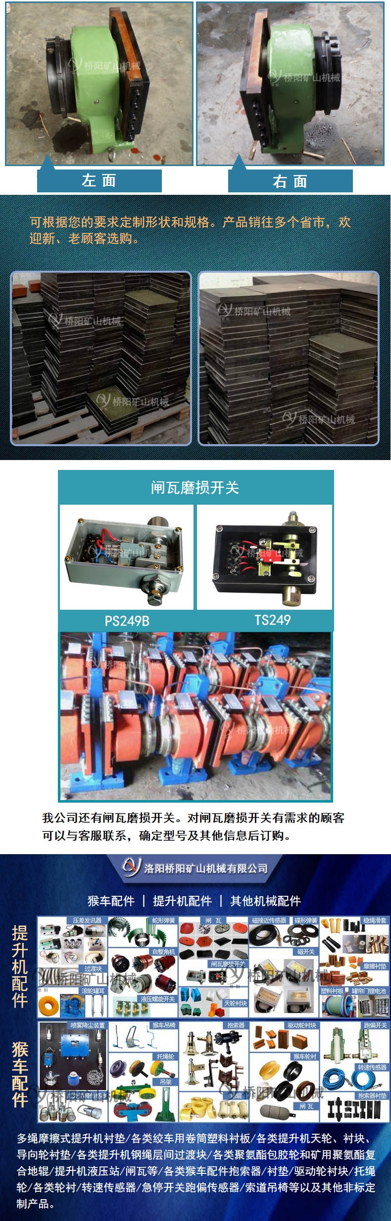 提升系统是矿井生产的咽喉,制动装置作为提升机一道也是关键的保障系统,其主要实现形式为盘形制动器。制动多是靠摩擦付的摩擦来实现的,是一个动能转变热能的过程,用作摩擦付的摩阻材料,是制动器运行的保障。