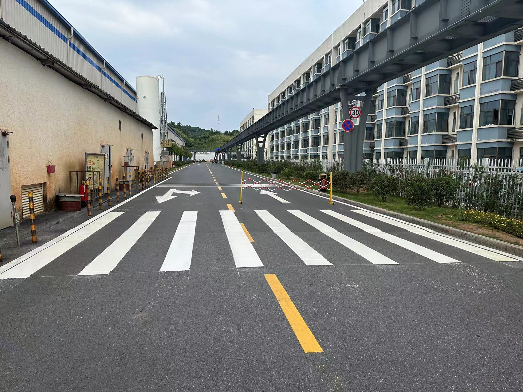 本公司施工的热熔标线涂料及其底漆配方系引用国外先进的制漆技术,融合国内的实际需求研发生产出来的。与同类产品相比,有更好的附着力和流动性,遮盖力好,耐高温和抗紫外线能力强,是白色涂料白底和耐侯性的保证,而黄色着色颜料采用高质量的包膜中铬黄和深铬黄,既保证了黄色涂料的鲜明性,又防止了黄色涂料高温过程中易变色的缺点。而在涂料中起沉降以及抗污染的聚乙衡蜡和增塑剂都分别用用美国和日本进口的原材料,保证了相对同类产品更高的抗污染和防止龟裂及沉降现象的能力,在同行中,无论从白度,硬度和颗粒的均匀性,色度和附着力来讲,本公司的热熔涂料的白底和耐磨性一直比较优秀。