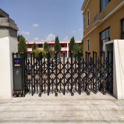 邯郸富源银色电动门伸缩门定制门框尺寸抗压1500强邯郸发货