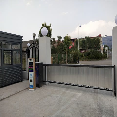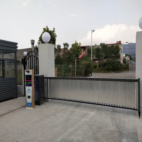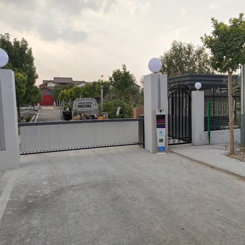 邯郸富源银色电动门伸缩门定制门框尺寸抗压1500强邯郸发货