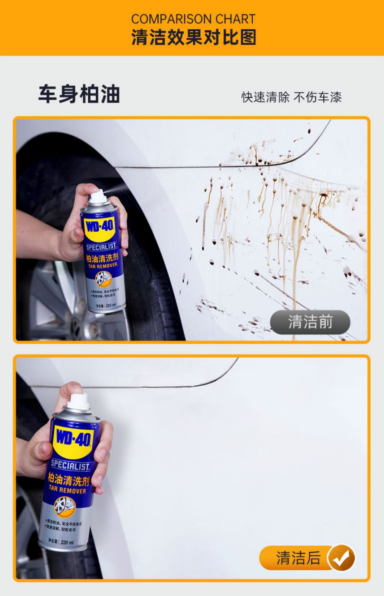 wd40车外漆面去柏油板油去除漆面强力去污沥青清洁汽车柏油清洗剂