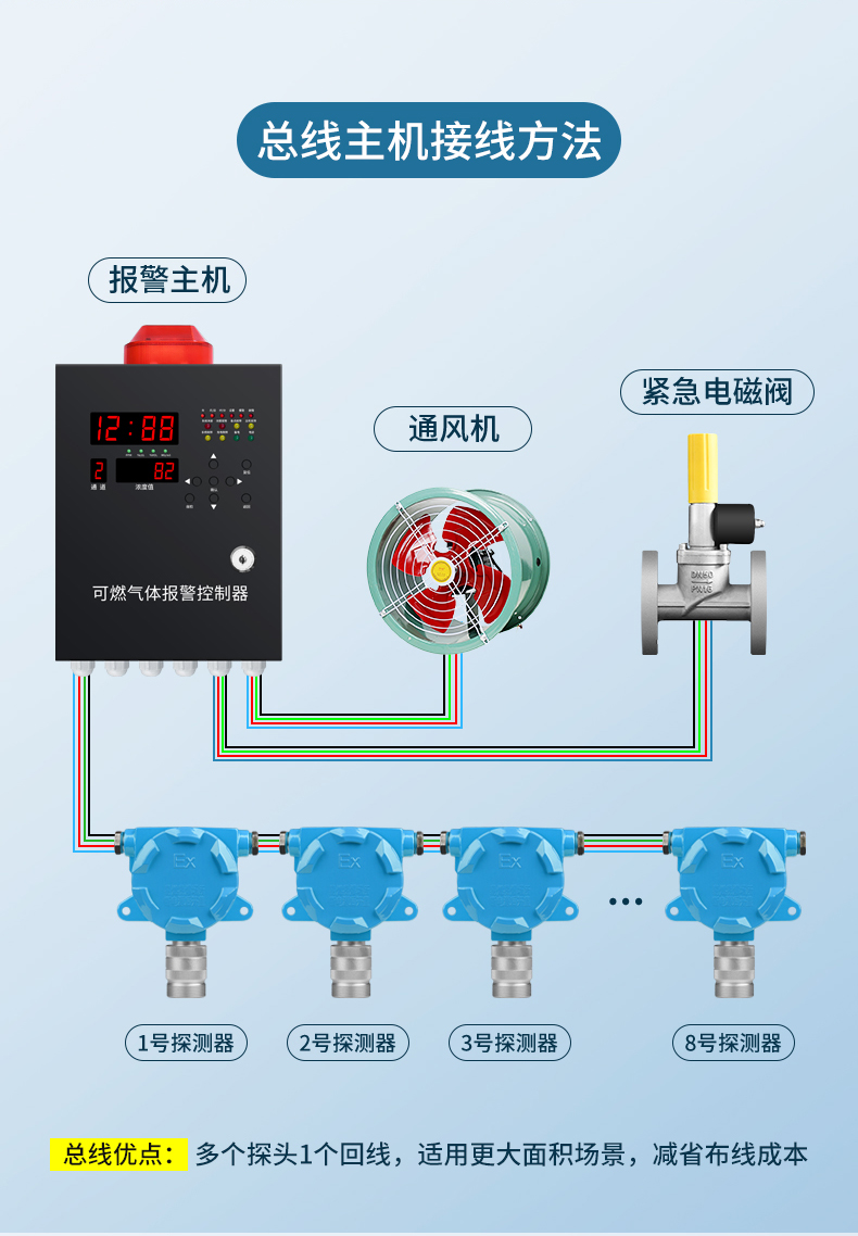 适配设备 | 任何4~20ma可燃气体探测器及配套外控设备 | ||