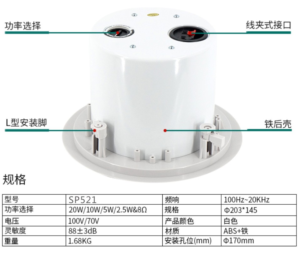YTAER音泰尔大型商超酒店背景音乐IP网络有源天花吸顶喇叭