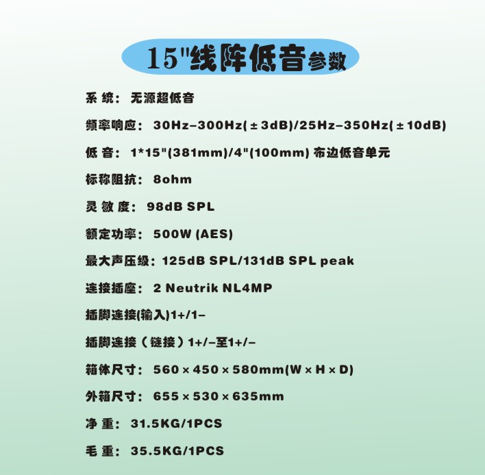 低音单元 | 2*6.5"(165mm)/1.38"(35mm音圈) 布边低音单元 | ||