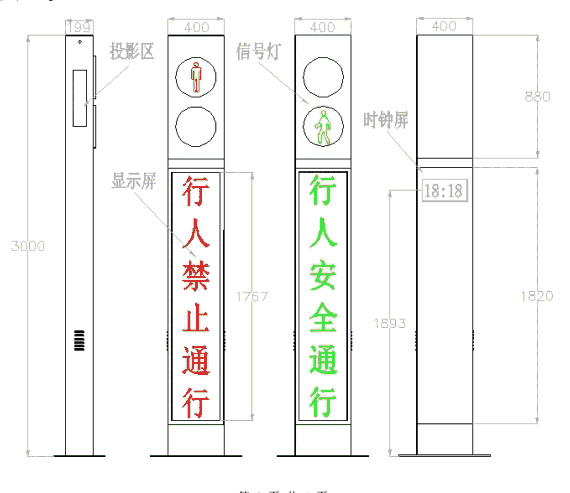 1.设备上安装有 LED 显示屏,可以显示提示行人的文字或者图片,更加直观的提醒人行现在可不可以过