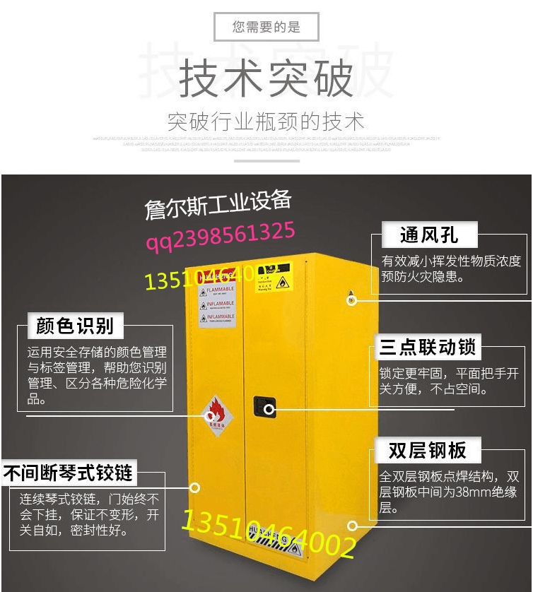 朋友们,兄弟们,老铁们。尤其是化工厂,医院,原料厂,科研单位的大小伙子们!你们的安全设施完善吗?安全防护措施做到位了吗?如果消防或者安监来检查你们应该怎么应对呢?静下心好好想想吧,或者你可以看过来,了解一下我们詹尔斯(zenersiy)的产品,东莞市詹尔斯工业设备有限公司主要研发,设计,生产,销售,售后防爆柜防火柜化学品液体安全储存柜。为你的化学品液体提供一个最安全可靠的庇护港湾。我司保证每一件出厂的产品合格且质量上乘,购买我司产品均有四种专业检测机构认证证书,质保两年,终身维护,安监包过,让大家放心工作,赚取利润,享受生活。