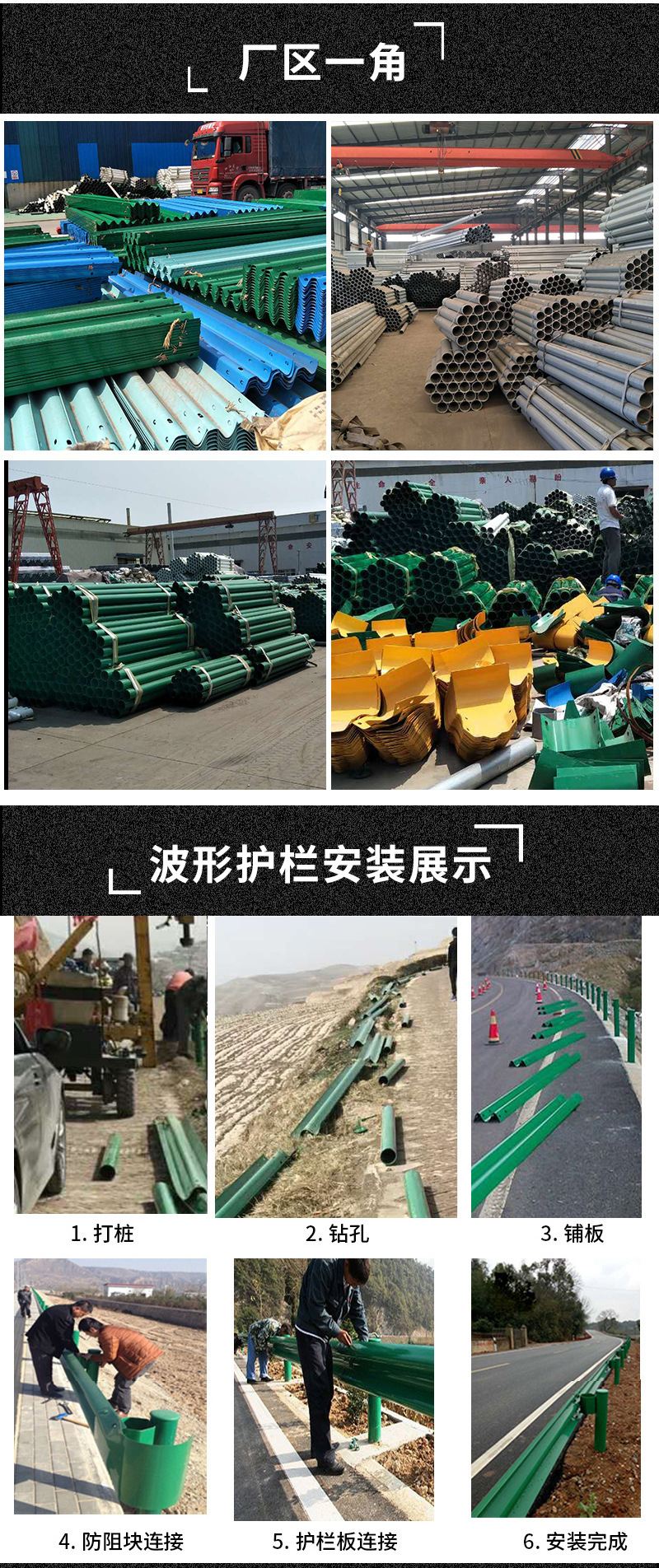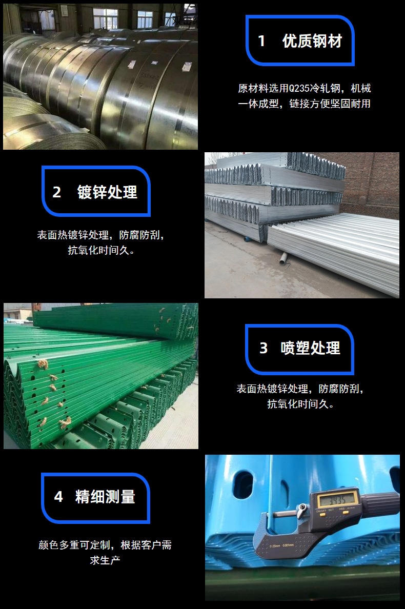 我们的主要业务包括:高速公路护栏板、波形护栏、桥梁护栏的生产、销售与安装。我公司引进先进的冲压、切割、磷化、冷镀锌、热镀锌、大型静电喷塑等全套生产设备。产品通过了工程监理检测中心(国家交通安全设施质量检测中心)的验收,全部符合:交通行业标准JT/T281—2007《高速公路波形梁钢护栏》、国家标准GB/T18226-2000《高速公路交通工程钢构件防腐技术条件》。年生产能力为15万吨.