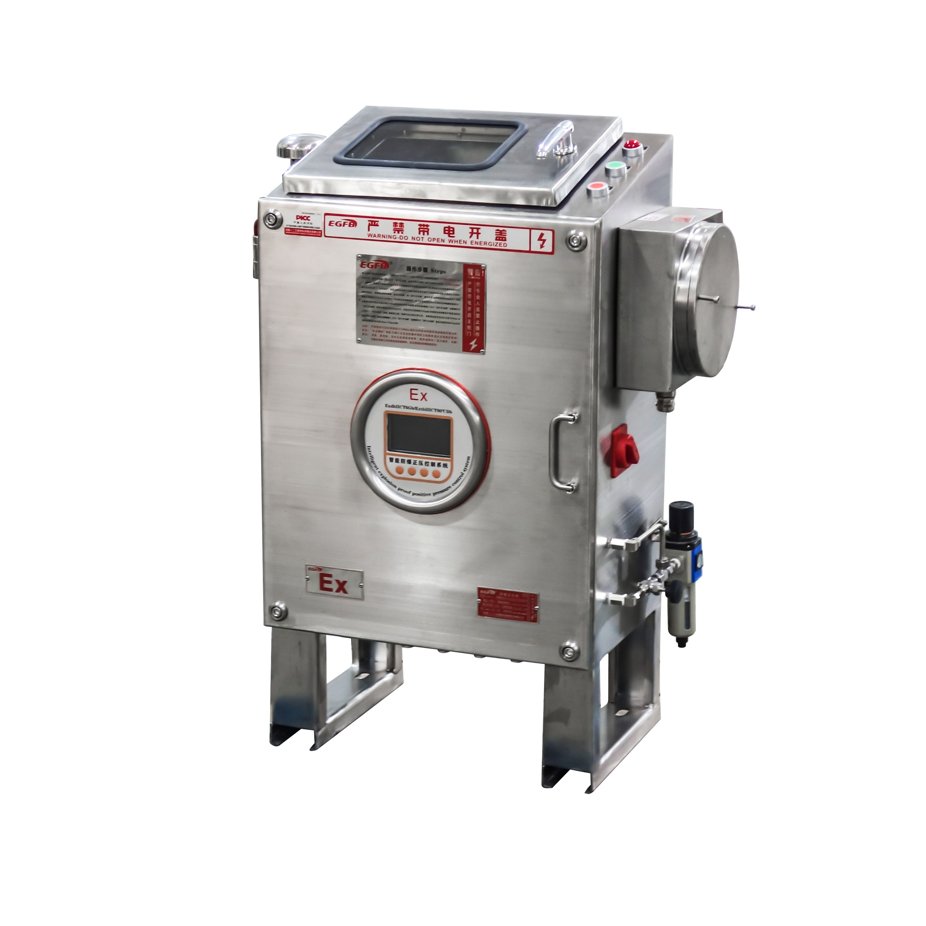 。箱内所采用的断路器、熔断器、继电器、信号灯等电器元件都是按相关国家及行业标准规定所生产,并取得防爆合格证的厂家采购。控制箱分接线腔和主腔两个部分,接换线是无需打开主腔即可操作,接线腔和主腔之间采用电缆直接连接并用环氧树脂胶封。