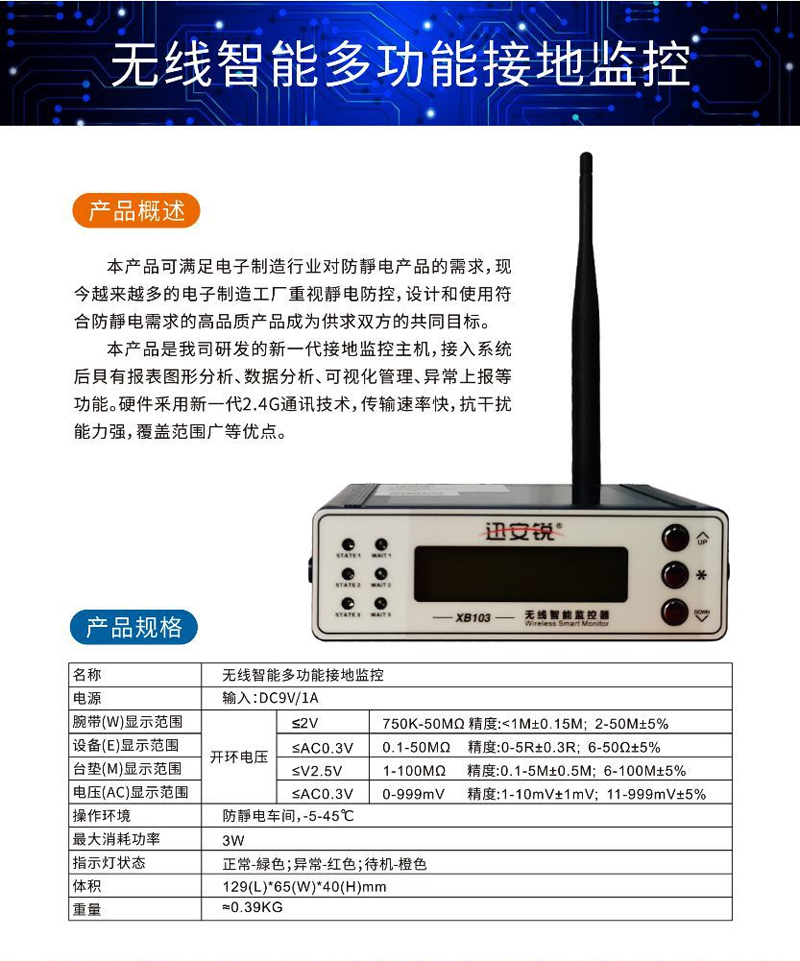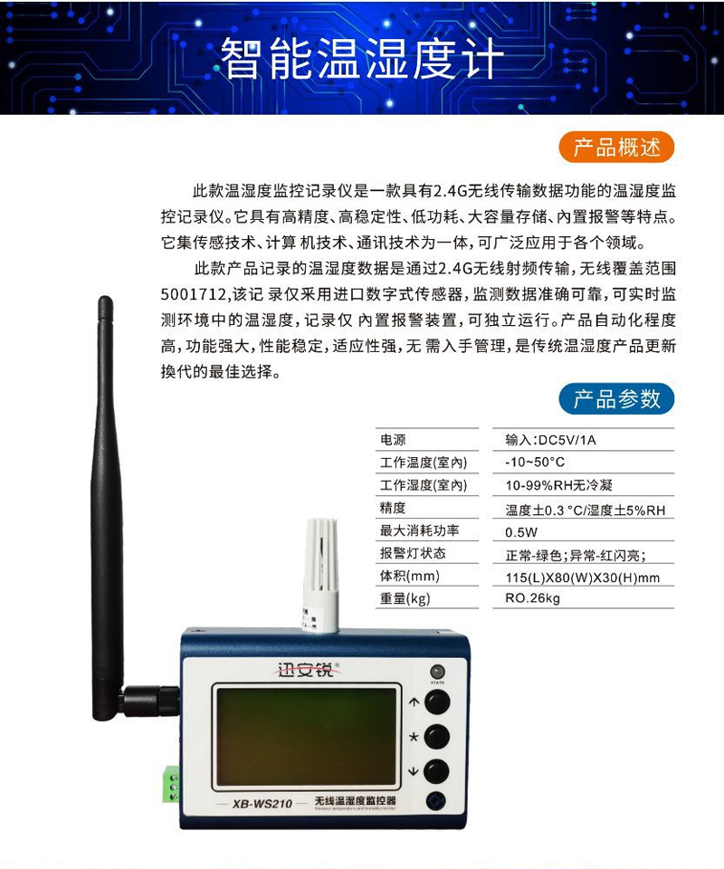 无线智能温湿度监控器监测无尘车间温湿度防静电监控系统XB-WS210
