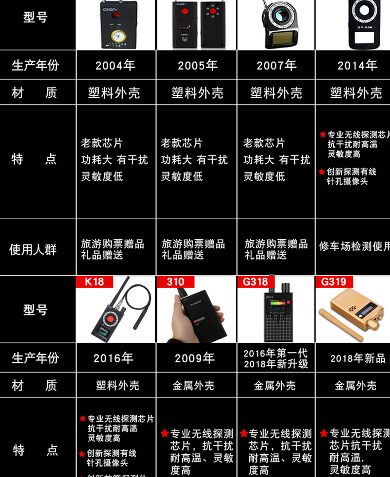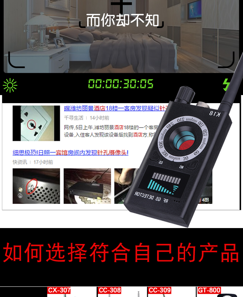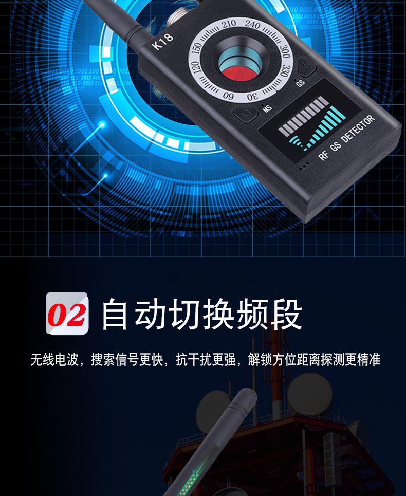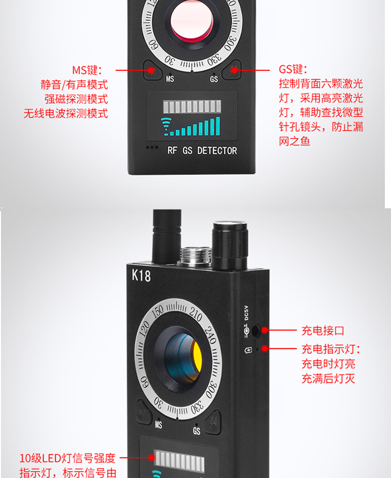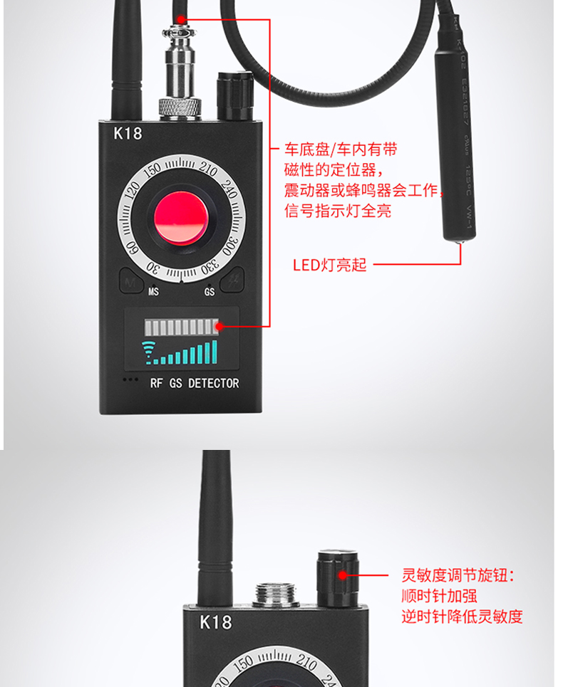 k18探测器酒店防偷拍防偷听无线信号探测仪gps防定位探测器