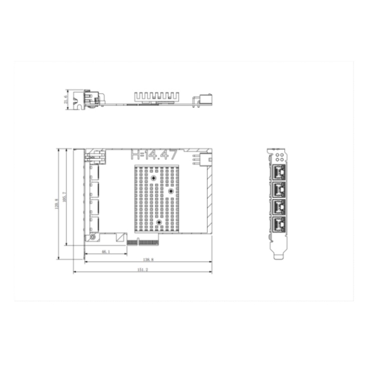 GE-5G40 杭州华睿科技4路工业相机用网络接口数据采集卡 结构尺寸图(mm):