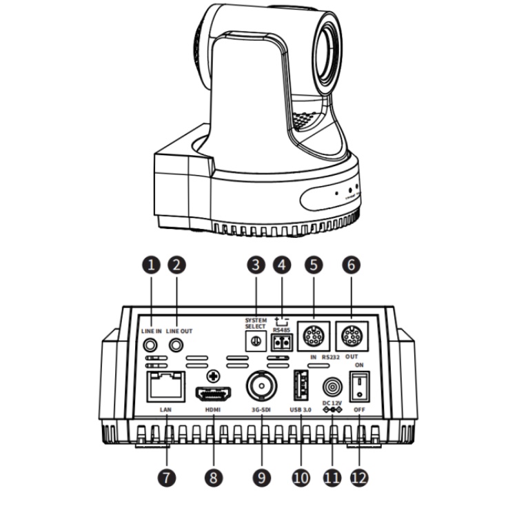 DS-65VC0301-HS 海康威视207万像素60fps高帧率12倍光学变焦高清视频会议摄像机 物理接口: