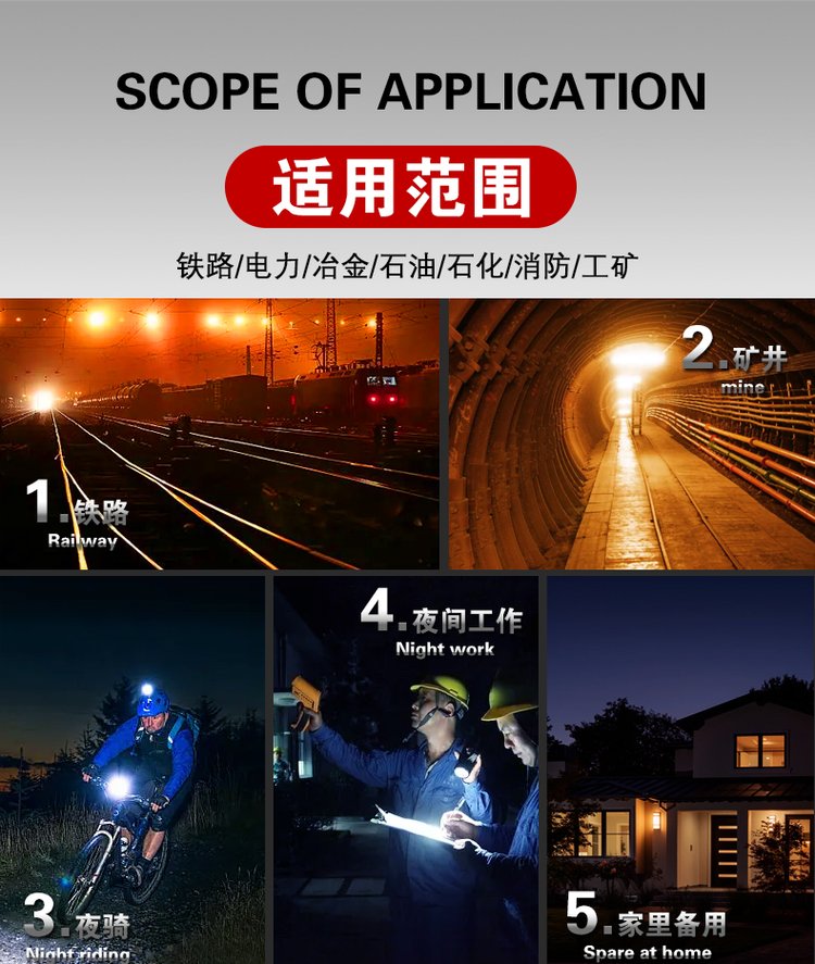 应用场景 | 消防应急,夜骑,电力,工矿 | ||