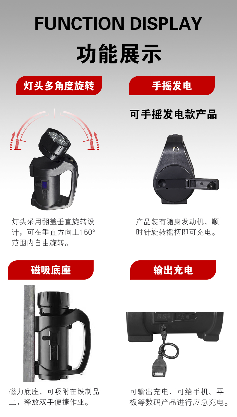 BJQ5502多功能手提巡检灯/大功率手摇式探照灯/手持灯 功率 | 3×3W | ||