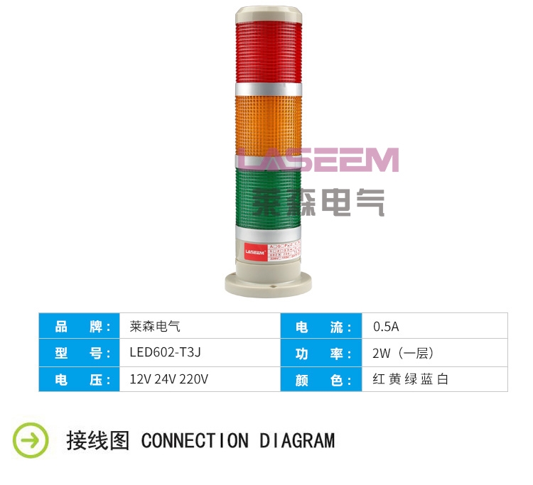 LED声光一体警示灯 三色信号灯 设备警示灯机床指示灯220V