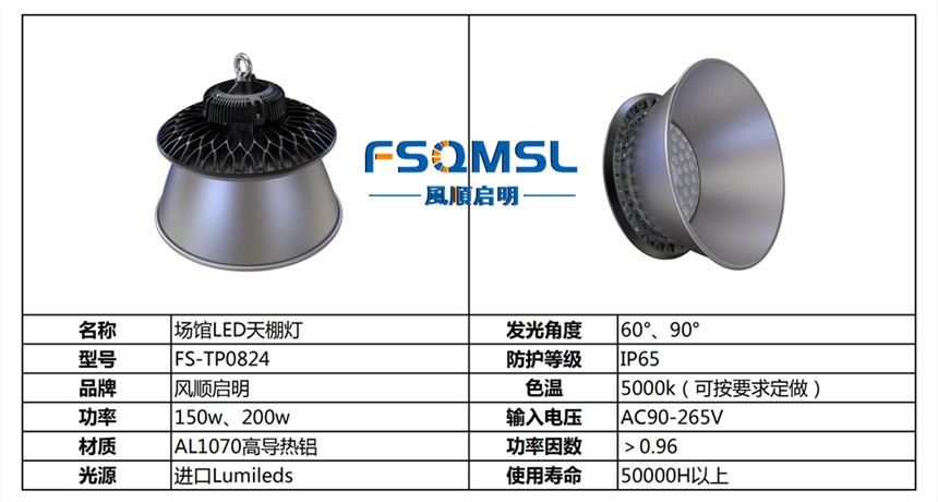 本方案设计使用20盏FS-TP0824-150W风顺启明体育馆LED天棚灯(平均照度338lx,可满足业余比赛标准)