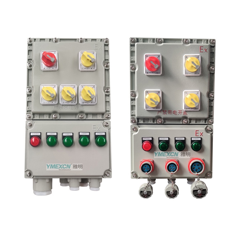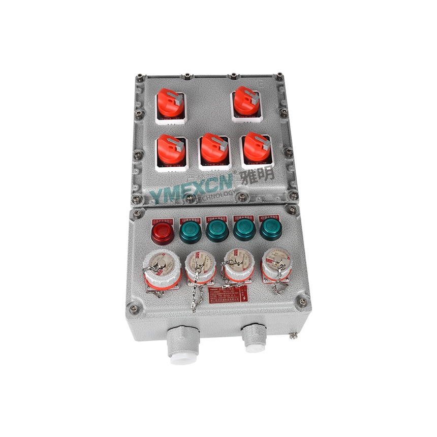 防爆配电箱首先考虑到的材质就是铝箱,价格实惠,尺寸能自由组合。铸铝合金防爆箱:外壳采用铸铝合金一次性压铸成型,表面喷塑。主腔采用隔爆型结构,接线腔增安型结构。内可选配装断路器、交流接触器、热继电器、Ex防爆控制按钮、Ex防爆信号灯等。配电箱采用模块化设计,各种回路可以自由组合,电器元件选型可由用户而定,其结构紧凑、外形美观。进出线采用钢管或电缆布线均可,进出线口方向可由用户要求而定。