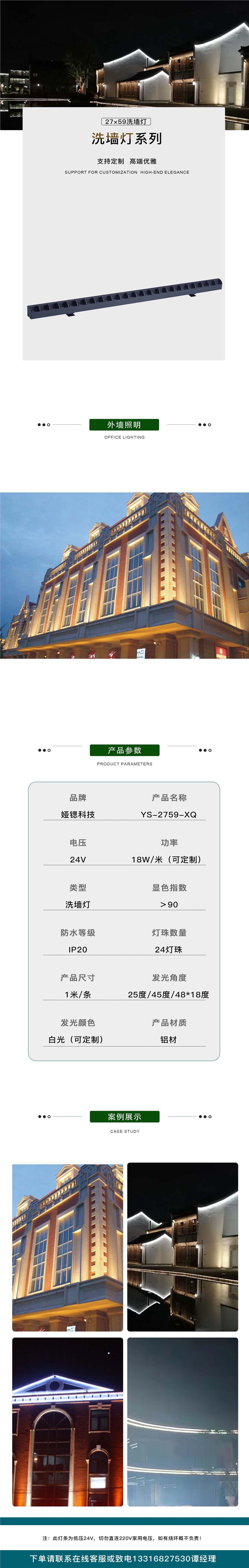 LED洗墙灯珊瑚B对称线性洗墙灯24V适用于楼宇室内外亮化型号2759