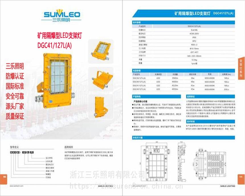 一、液压支架照明灯 DGC41/127L(A) 矿用隔爆型LED支架灯 适用范围: