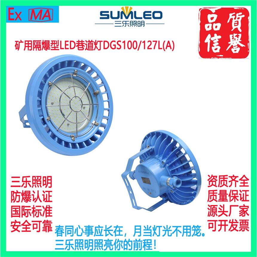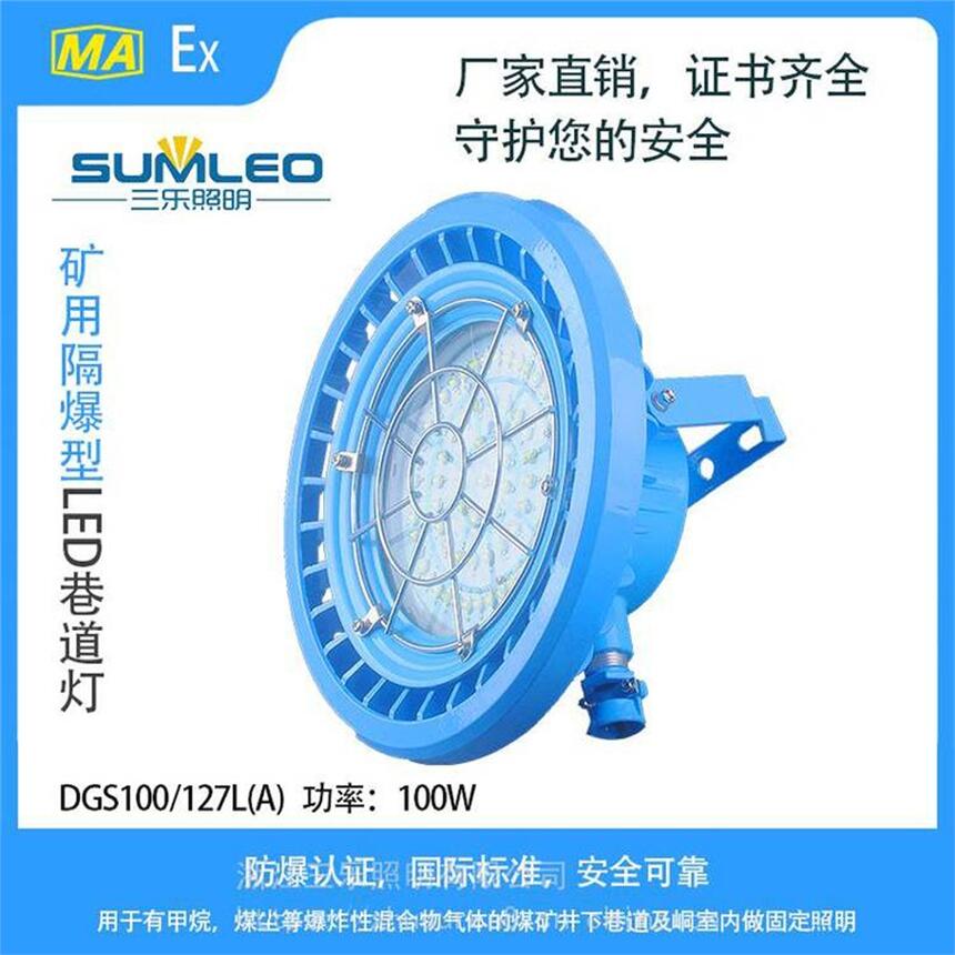 DGS100/127L(A)矿用隔爆型LED巷道灯 100W防爆巷道灯适用场所: 1.适用于有甲烷、煤尘等爆炸性混合气体的煤矿井下采掘工作面固定照明用。
