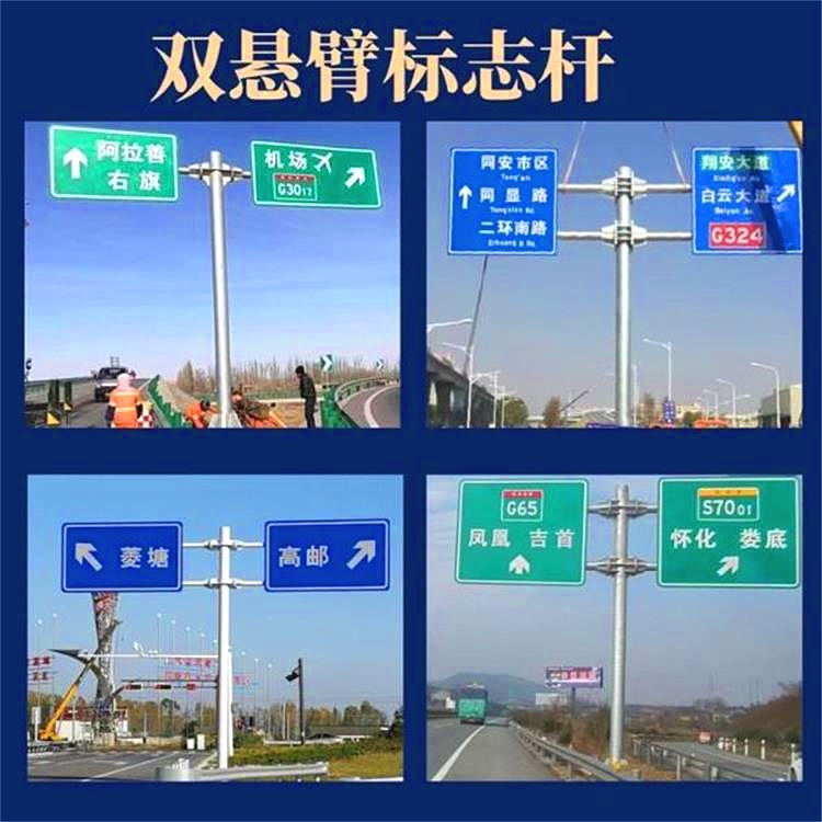 多柱式交通标志杆是标志板安装在两根及两根以上立柱上,是适用于长方形的指示或指路标志。多柱式交通标志杆单柱式交通标志杆是标志板安装在一根立柱上,适用于中、小型尺寸的警告、禁令、指示标志和小型指路标志。