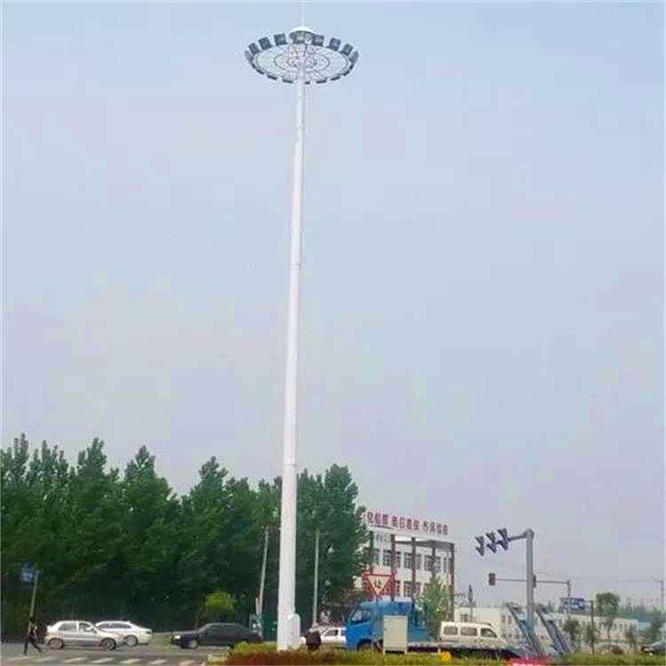 高杆灯属于路灯里的其中一种灯型,之所以称之为高杆灯是因为其高度通常是在15米以上,比其它常规路灯高出很多,故此而得名。用于、港口、码头等需要大范围光照的场所。户外高杆灯的特点主要突出在“高”上,高,是高杆灯的一大亮点,与其说亮点不如说优点更为贴切,因为高度的优势能使顶端的光源照射面积发挥到,从而达到一个非常的照明效果,光照范围可达10000平方米。光源一般采用钠灯、 金卤素灯、LED灯, 数量在3-20个之间,升降式高杆灯设手动和电动两种升降控制,使灯盘可以降到离地面2.5米处,方便工作。