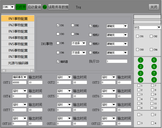 当输入IN信号后,模块执行对应的IN事务流程。每个IN事务流程在模块参数设置软件界面设置。