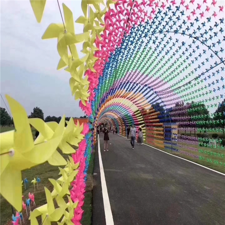 七彩风车展,给人带来好心情回忆起童年的时光~风车的海洋,风缓缓吹过,悦耳的声音,仿佛心中的烦躁去被吹去多彩浪漫的童话世界一个七彩斑斓的心形长廊,一个充满爱的长廊在梦幻风车长廊里。