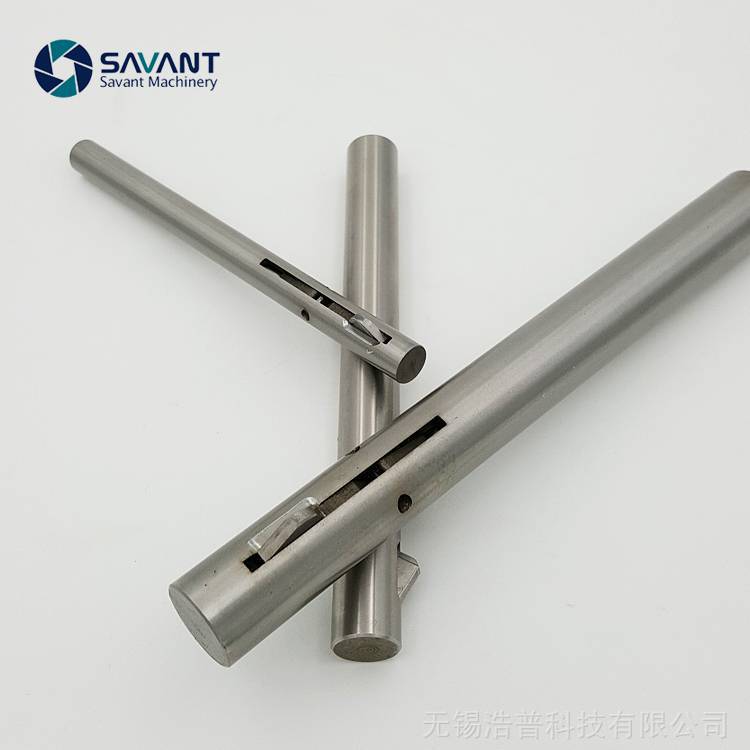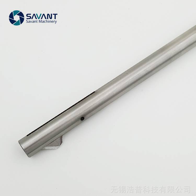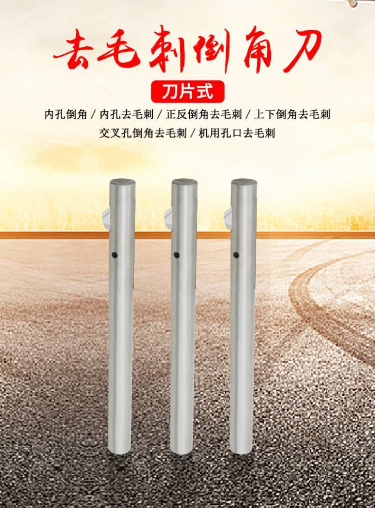 结构介绍:??倒角刀由刀杆体,刀片和弹性闭合槽构成;前段为入孔导向体,刀片前端为45度,内端为33度角,槽口为6度角。