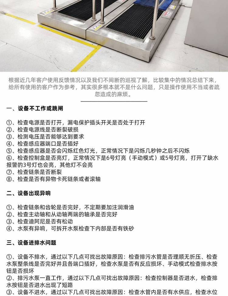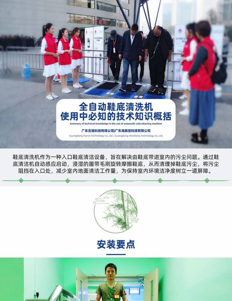 鞋底清洁机作为一种入口鞋底清洁设备,旨在解决由鞋底带进室内的污尘问题。通过鞋底清洗机自动感应启动,浸湿的履带毛刷旋转摩擦鞋底,从而清理掉鞋底污尘,将污尘阻挡在入口处,减少室内地面清洁工作量,鞋底洗鞋机为保持室内环境洁净度树立一道屏障。