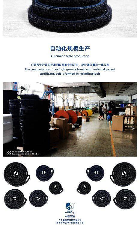 中国合瑞科技全自动鞋底清洗机皮带毛刷均由自己生产制造,采购进口新料开模一体化制作而成,毛刷采用拥有技术的高勾毛刷通过自动化设备编织而成。鞋底清洗机齿全部采用T5齿,与清洁机主动轴具有有效密切的咬合力。 而市场上很多流通的皮带毛刷采用的是同步带切割接合而成,很多皮带毛刷与主动轴也没有很好的咬合作用,很容易出现断裂不情况。有些不良商家甚至会采用废料或者改性合成料制作皮带毛刷,极易出现断裂老化。