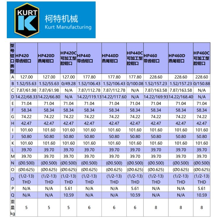 类型 | KURT柯特夹具 | ||