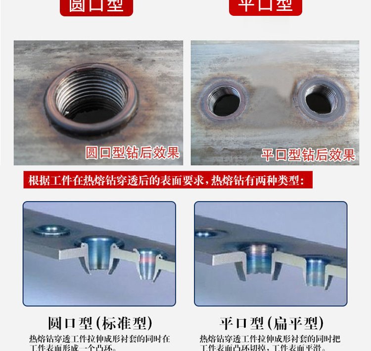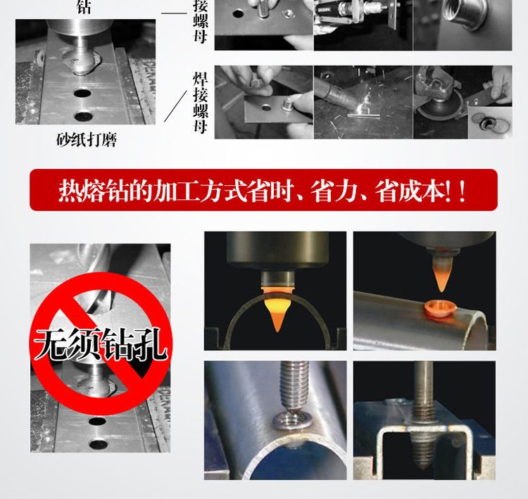 功能用途 | 薄壁钢材、铁材、铝材、铜材热熔钻孔 | ||