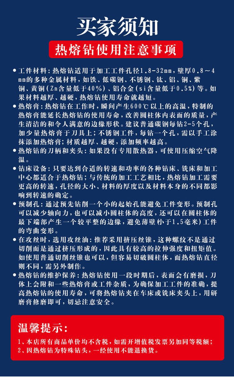 适用范围 | 薄壁钢材、铁材、铝材、铜材热熔钻孔 | ||