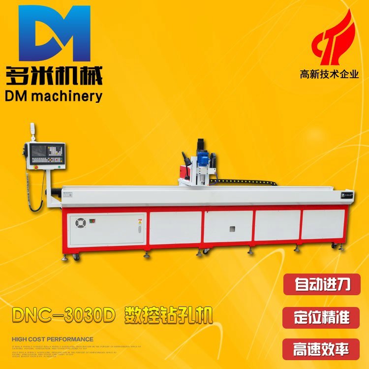 2、产品大批量加工生产时,封闭式数控钻床因其工作台和空间限制,当一件产品加工完机床停下来才能更换新产品,浪费时间。而DNC-3030D铝合金加工中心加工行程大,并且是敞开式结构,可一次放多个产品,依次进行钻孔,不停机循环式加工。在加工的同时还可以操作其他机台,一人多机操作,提高加工效率。