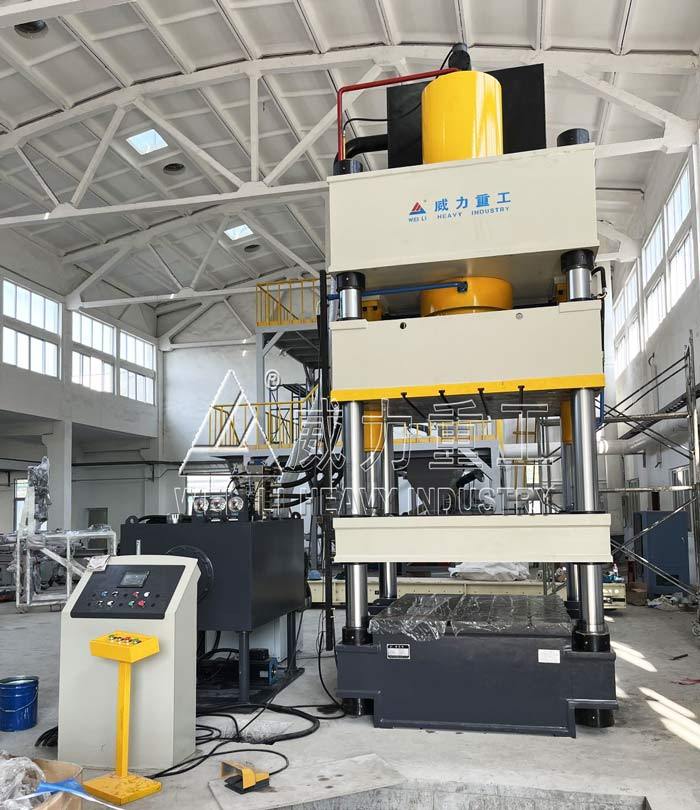 1、将400吨四梁四柱液压机-400T粉末压块机液压油添加至液面高度。