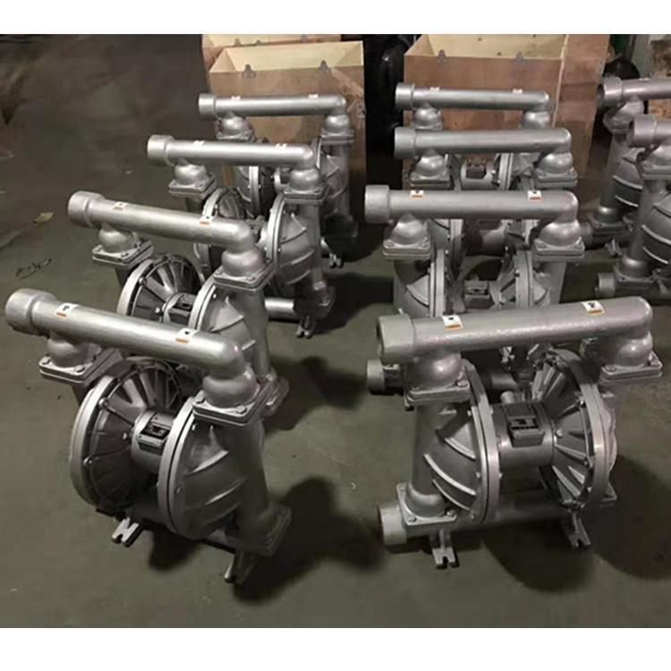???气动隔膜泵是一种新型输送机械,采用压缩空气为动力源,对于各种腐蚀性 液体,带颗粒的液 体,高粘度、易挥发、易燃、剧毒的液体,均能予以抽光吸尽,目前已形成化生产,产 品质量深受好评 。这种泵的主要特点是不需灌引水,既能抽送流动的液体,又能输送一些是易流动的介质 ,吸程高、扬 程可调(0-50米)气源压力只须大于1kg/cm2即能工作,防火防爆,具有潜水泵、自吸 泵、杂质泵、 泵、泥浆泵的一切功能和输送机械的许多特点。