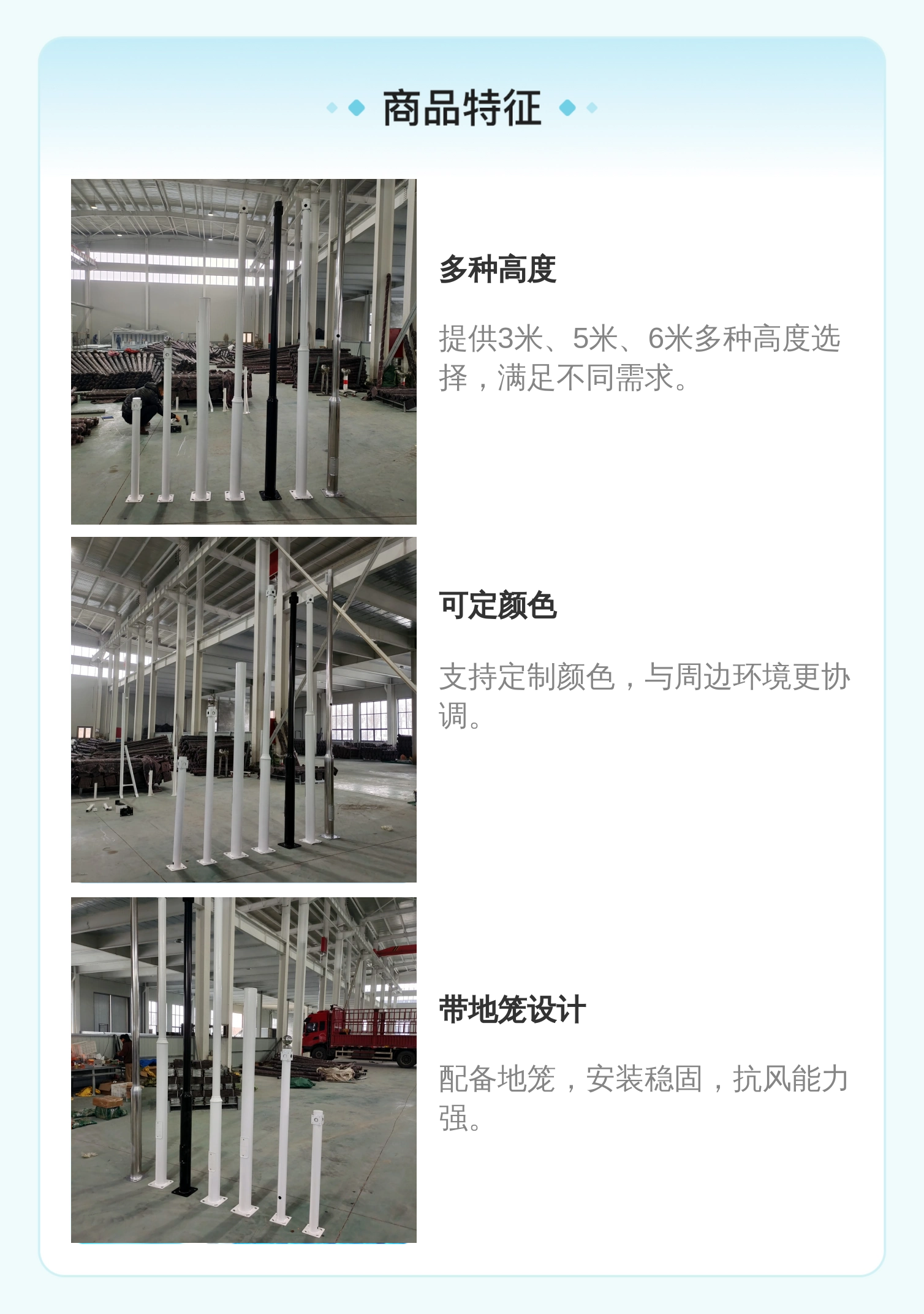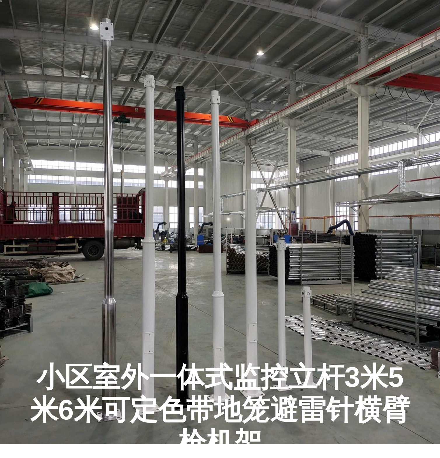 小区室外一体式监控立杆3米5米6米可定色带地笼避雷针横臂枪机架