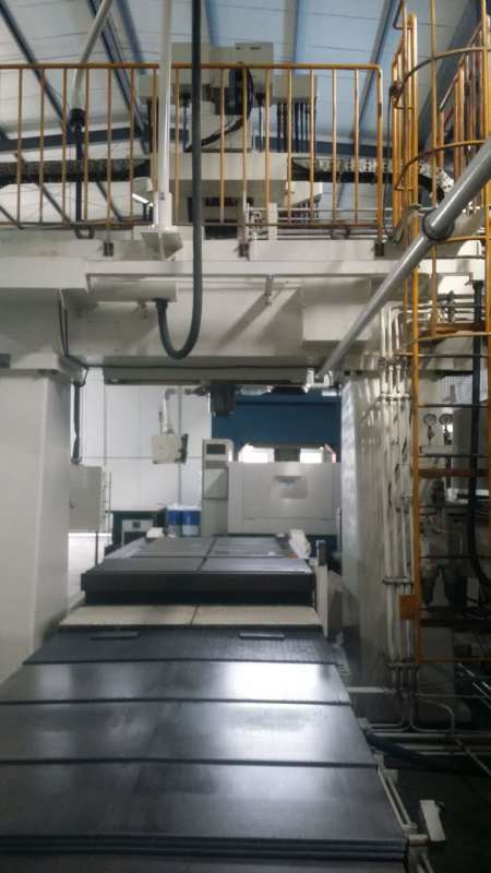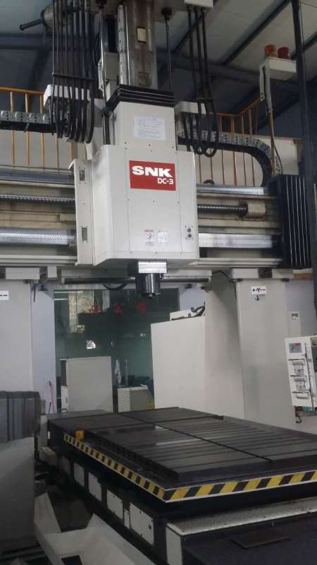 日本SNK DC3龙门加工中心(百度搜温州鼎翔机电有限公司-姜林)(参数仅供参考以实际为准)型号:SNK DC-3年份:2005品牌:新日本工机SNK系统:FANUC 15M龙门宽度:2000mmX 轴行程:3250mmY 轴行程:2700mmZ 轴行程:950mm工作台尺寸:1500x3000mm主轴鼻端至工作台面:1150mm承重:10000kg主轴功率:25/22kw主轴转速:6000rpm主轴规格:BT50滑枕尺寸:360x360mm链式刀库:40把工位机器重约:30吨
