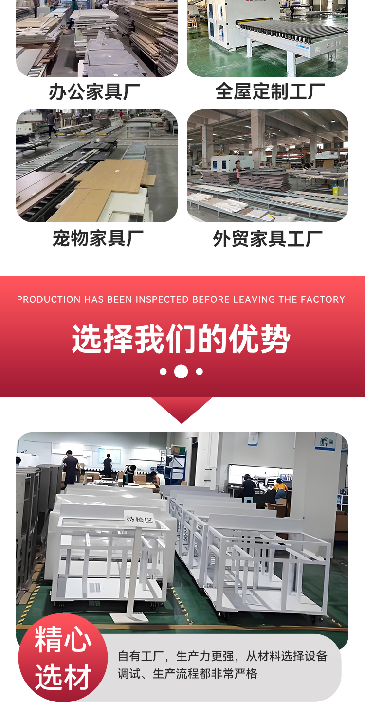 使用场景 | 全屋定制工厂、办公家具工厂、外贸家具工厂、宠物家具/酒店家具工厂 | ||